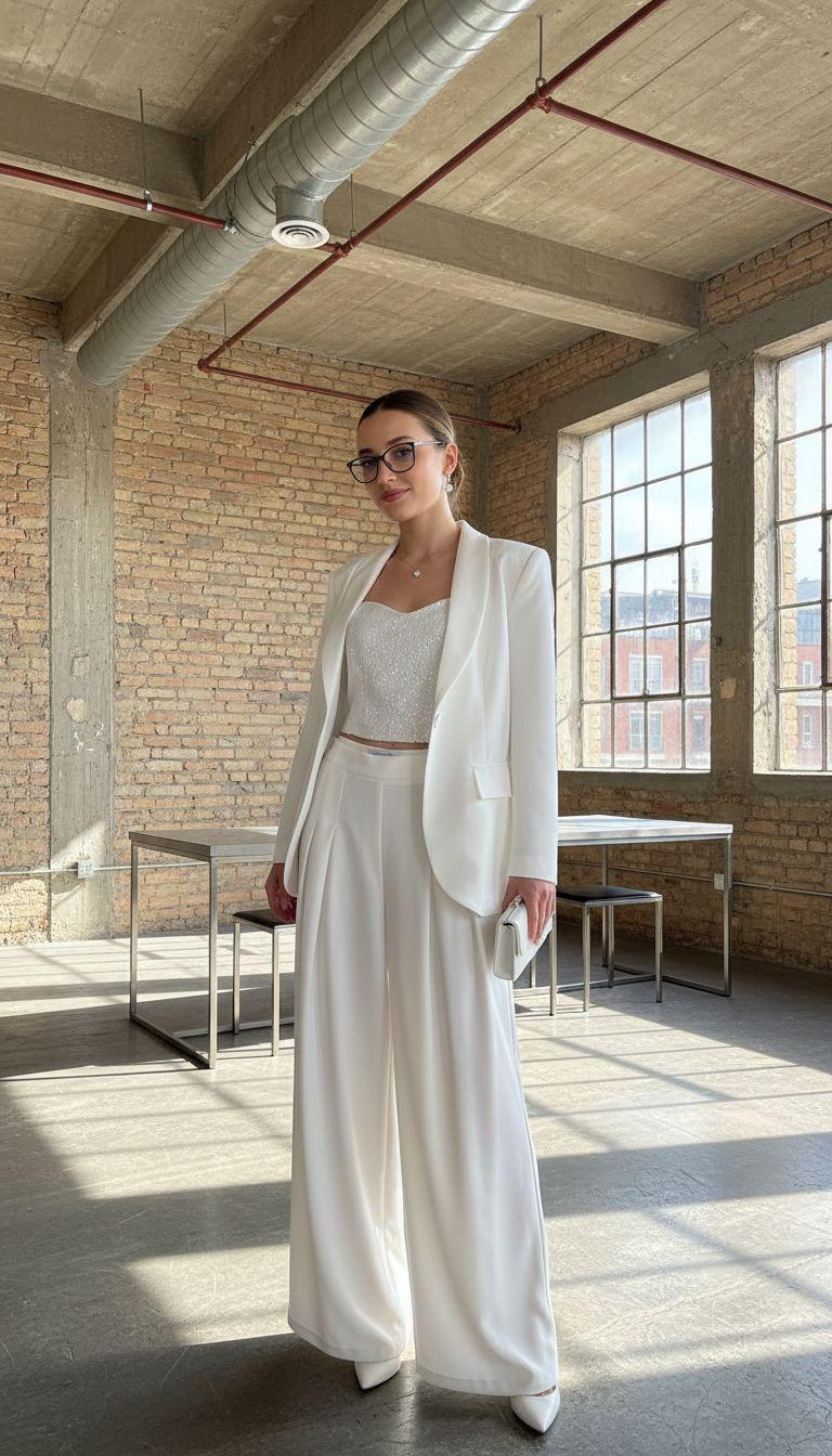 Beyaz payet krop, yüksek bel pantolon veya eteklerle kombinlendiğinde klasik ve dengeli bir duruş yakalar. Üzerine şık bir blazer veya ceket giyerek hem gündüz hem gece stilinde sofistike bir hava yaratabilirsiniz. Minimal takılar ve metalik ayakkabılarla ışıltıyı vurgulayarak etkileyici bir görünüm elde edersiniz.