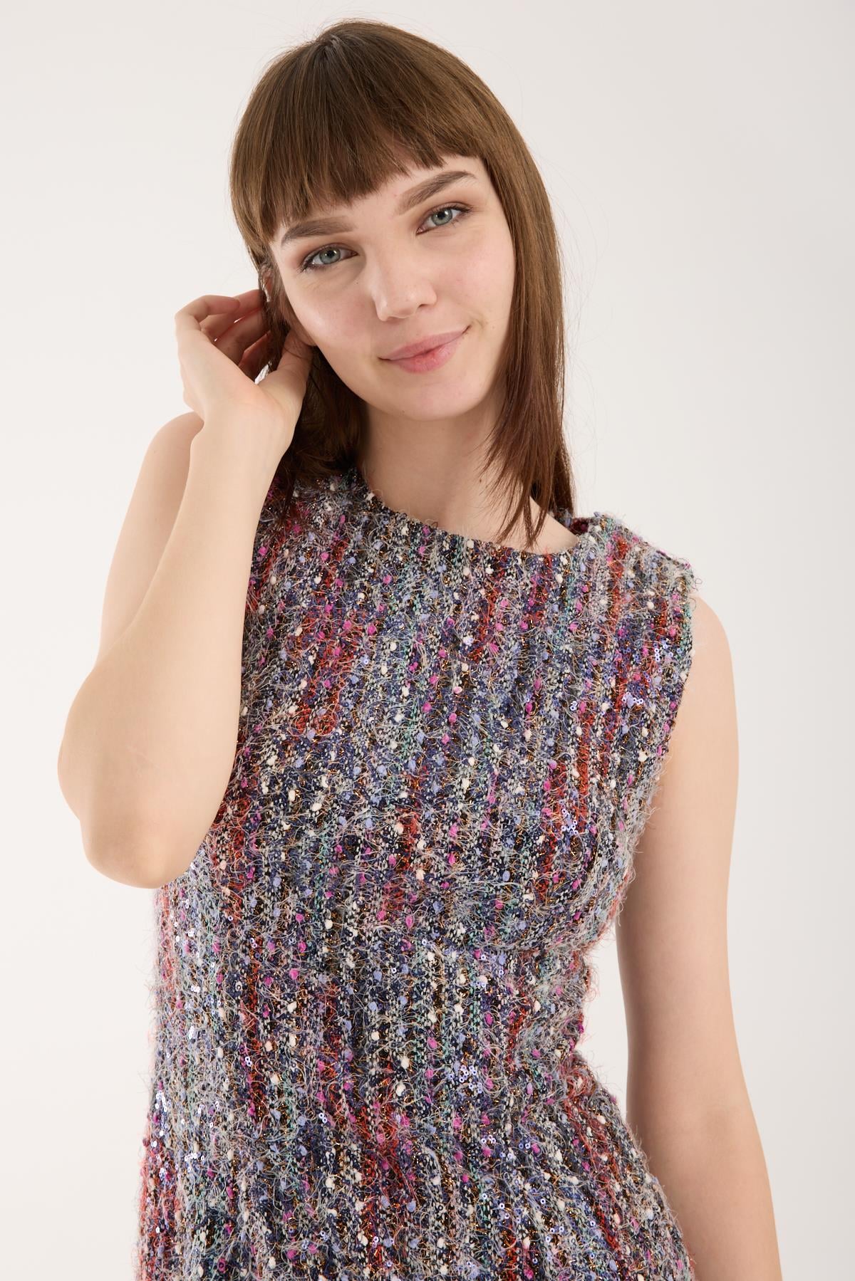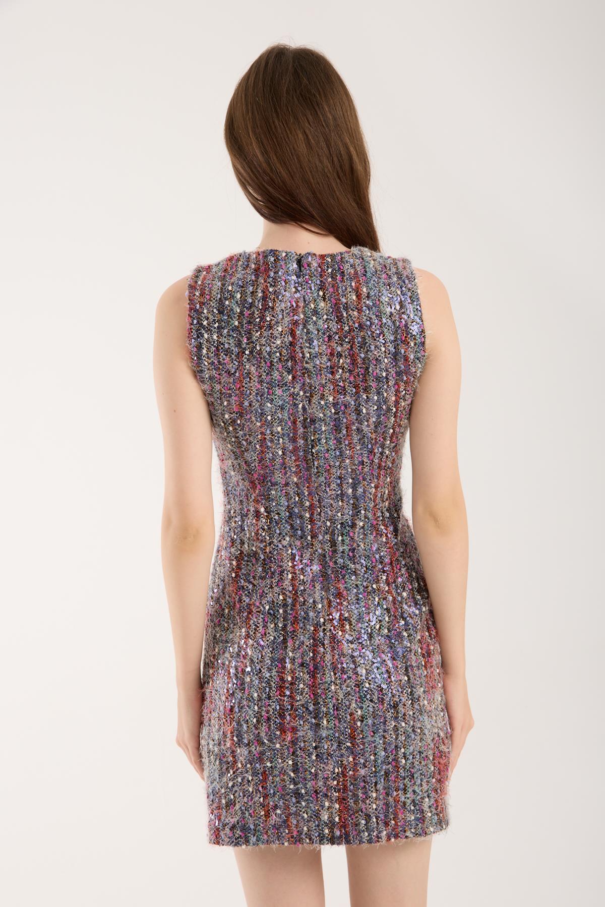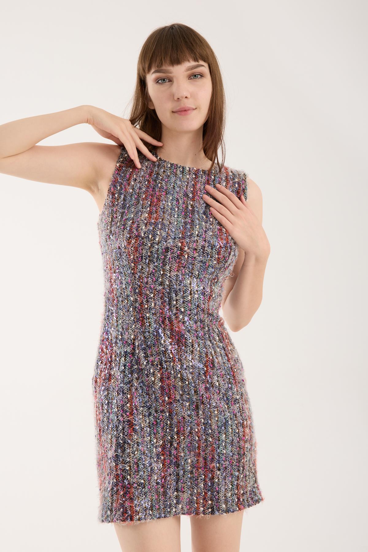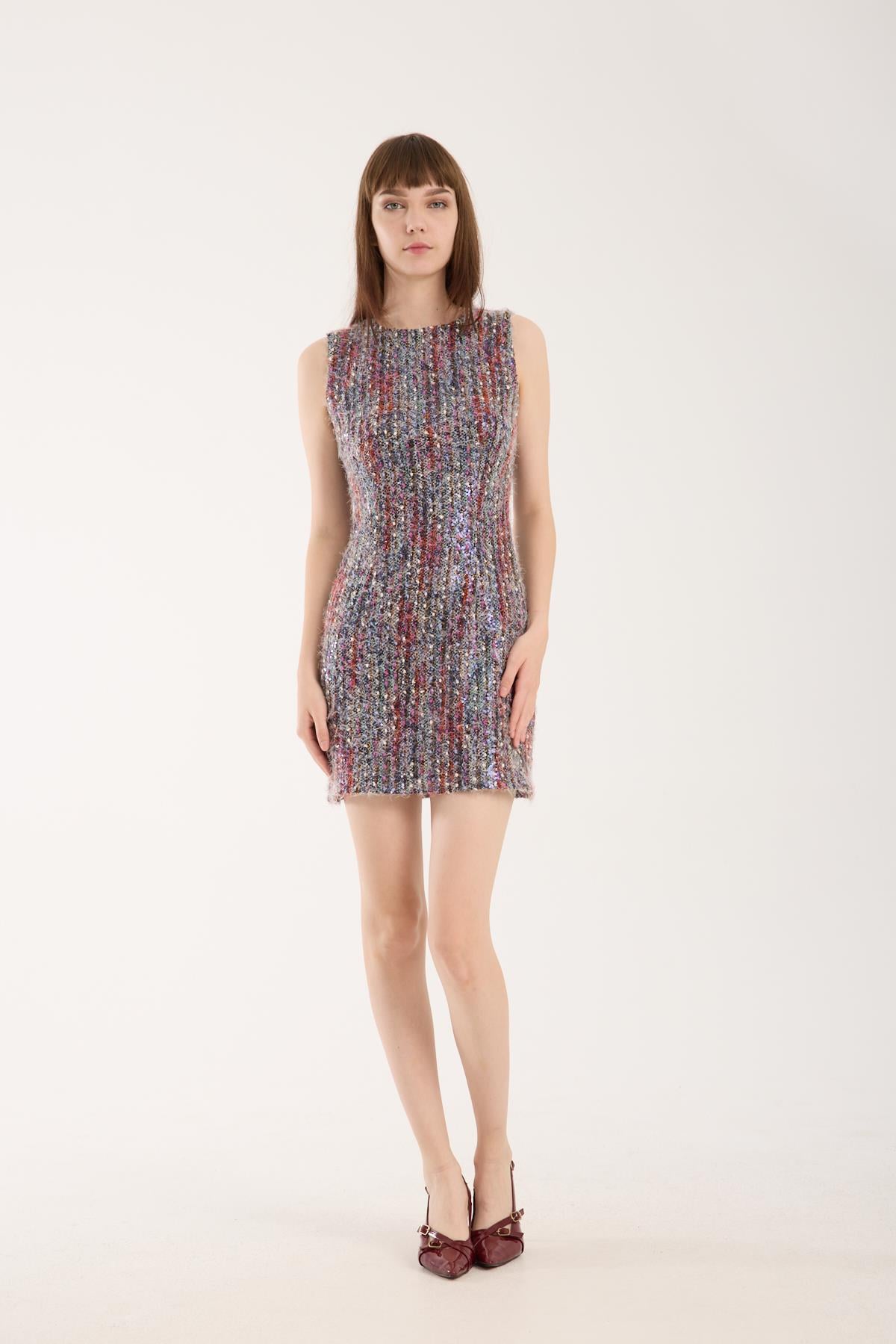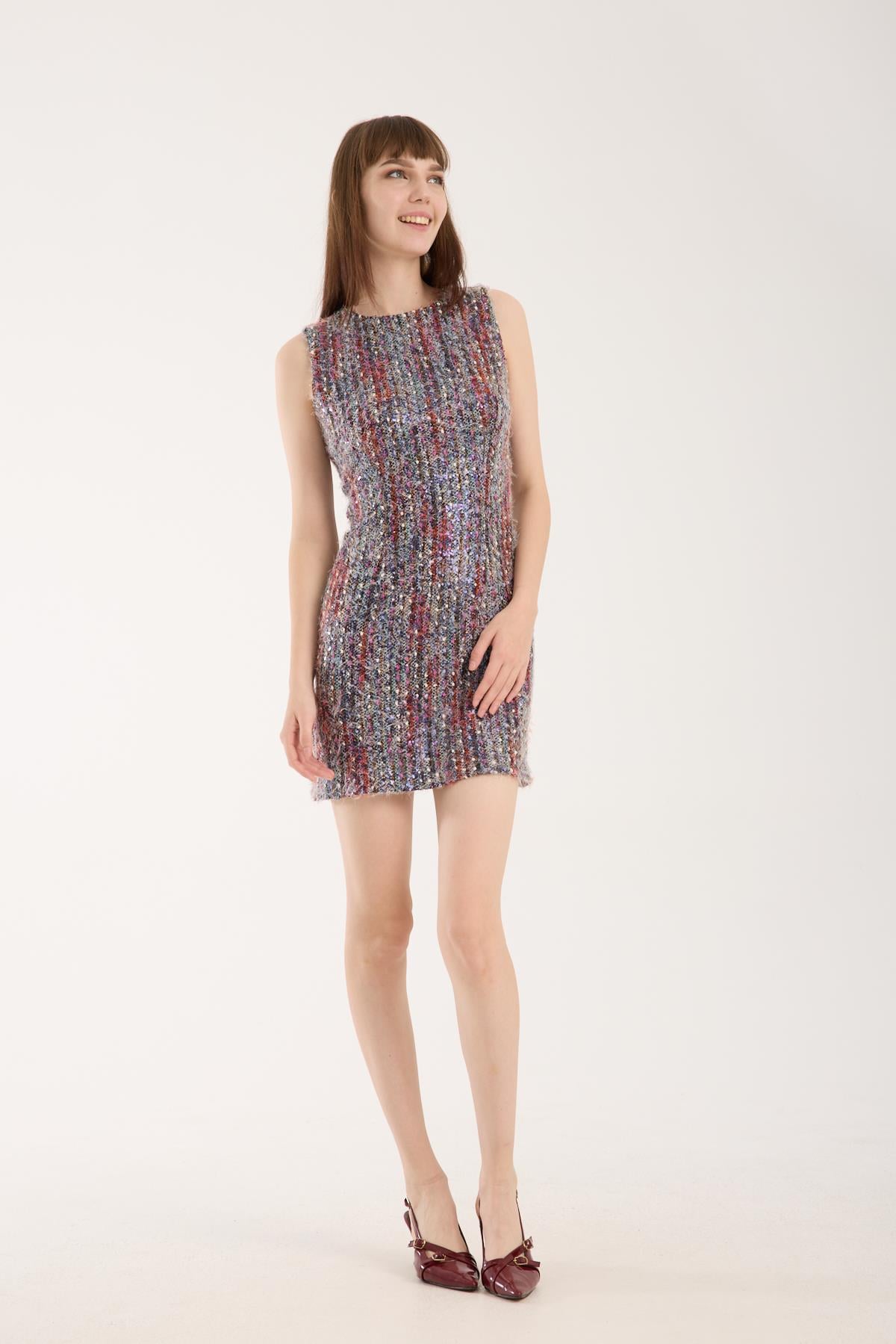 Renkli Pullu İthal Tüvit Mini Elbise