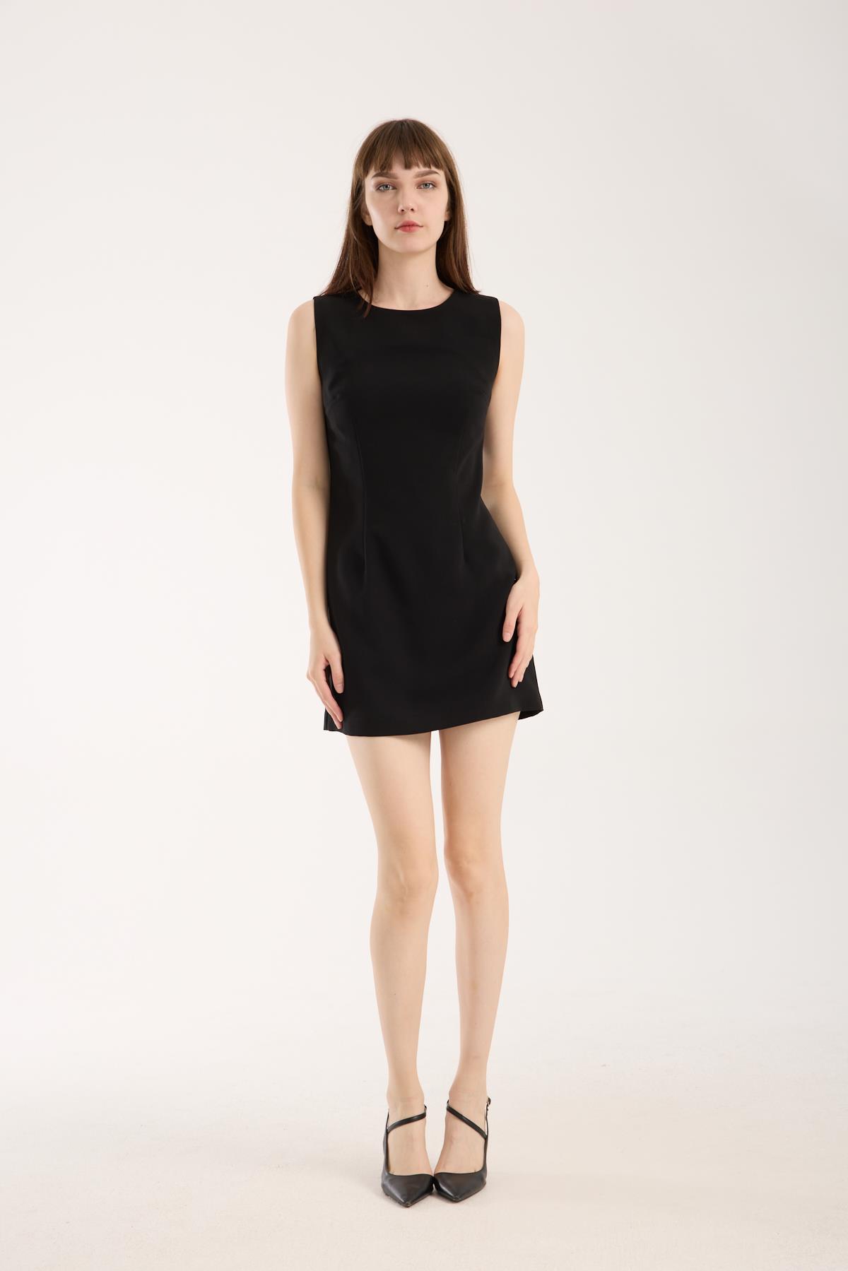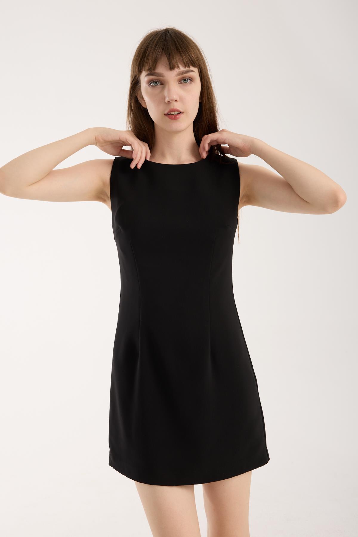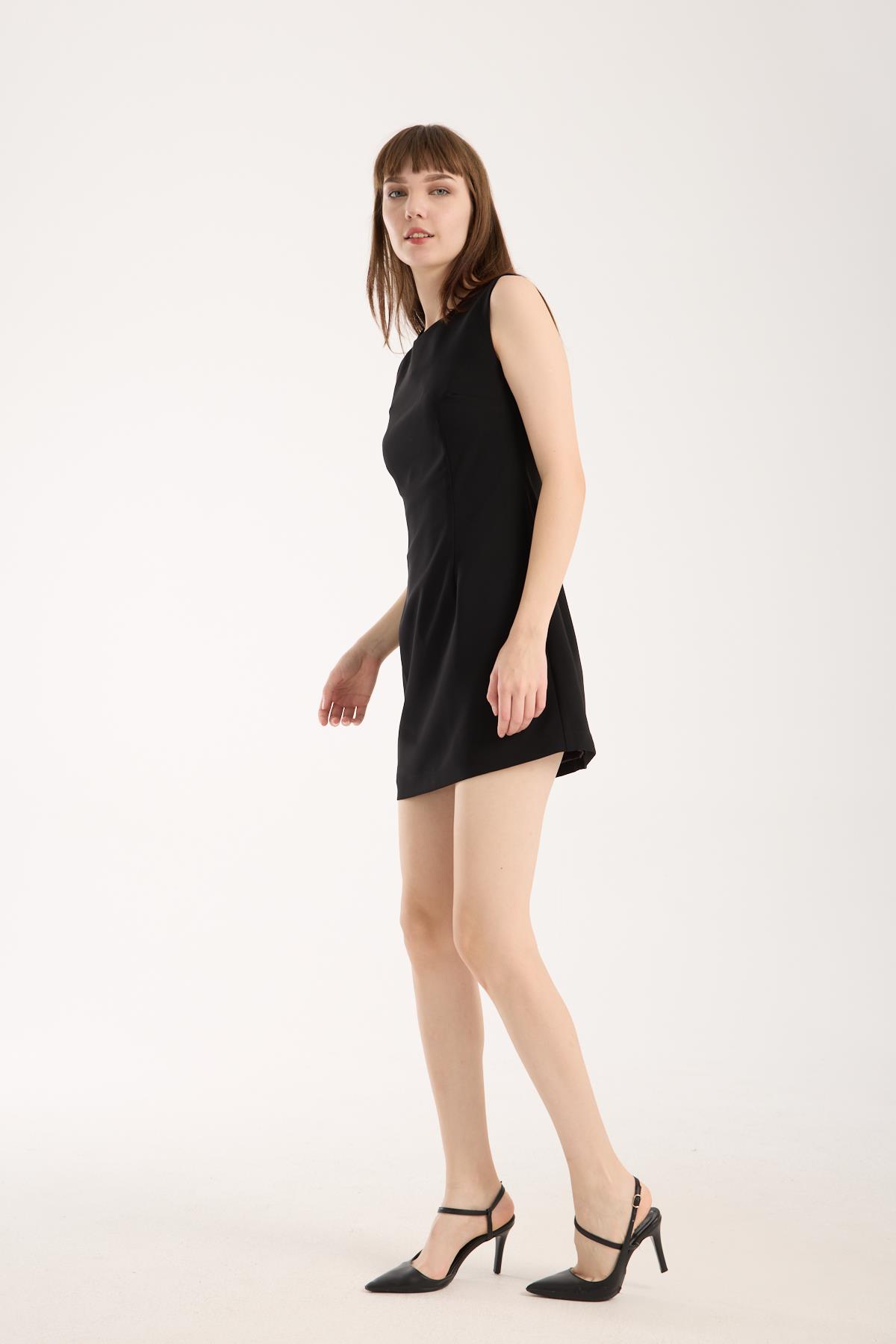 Siyah Krep Mini Elbise