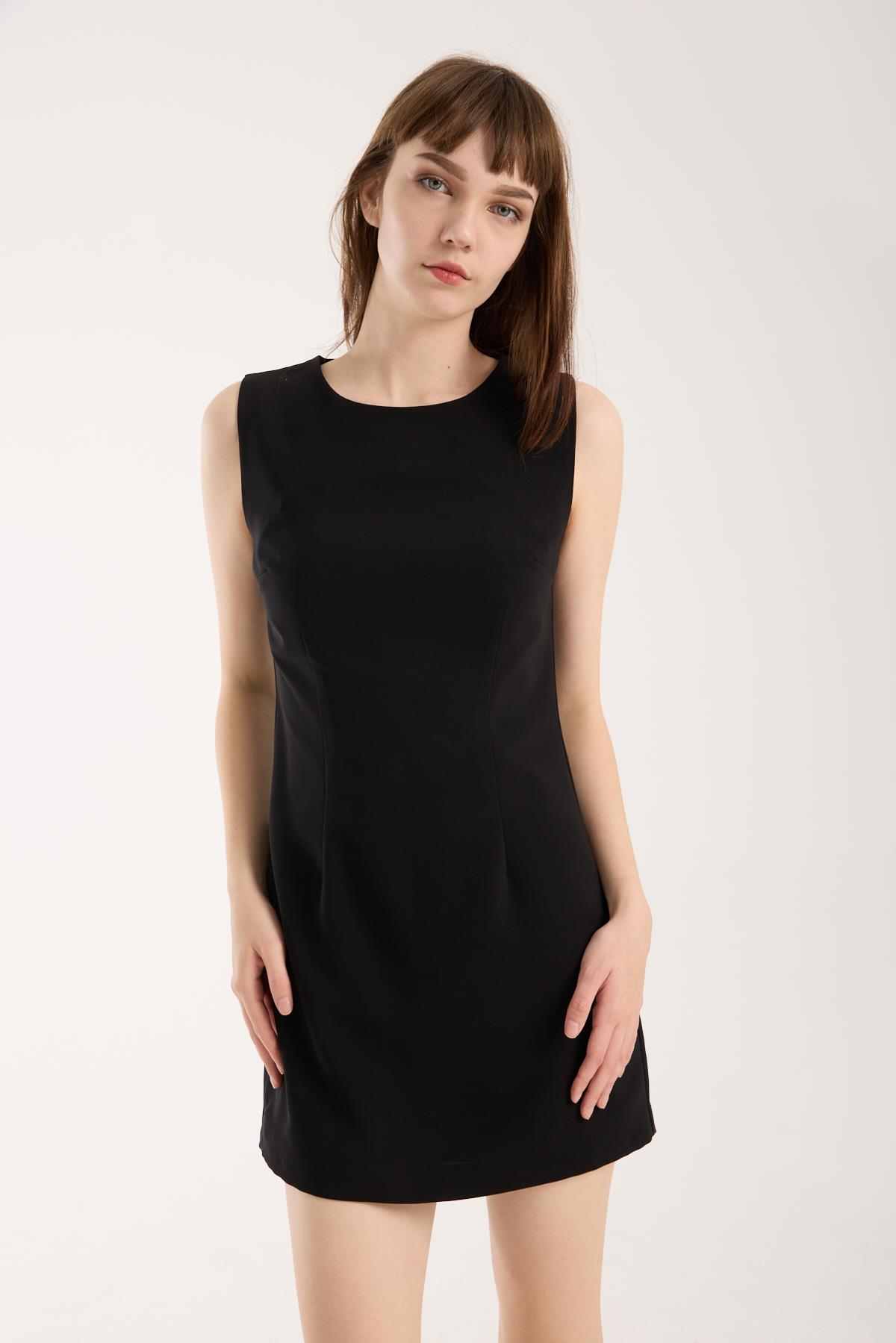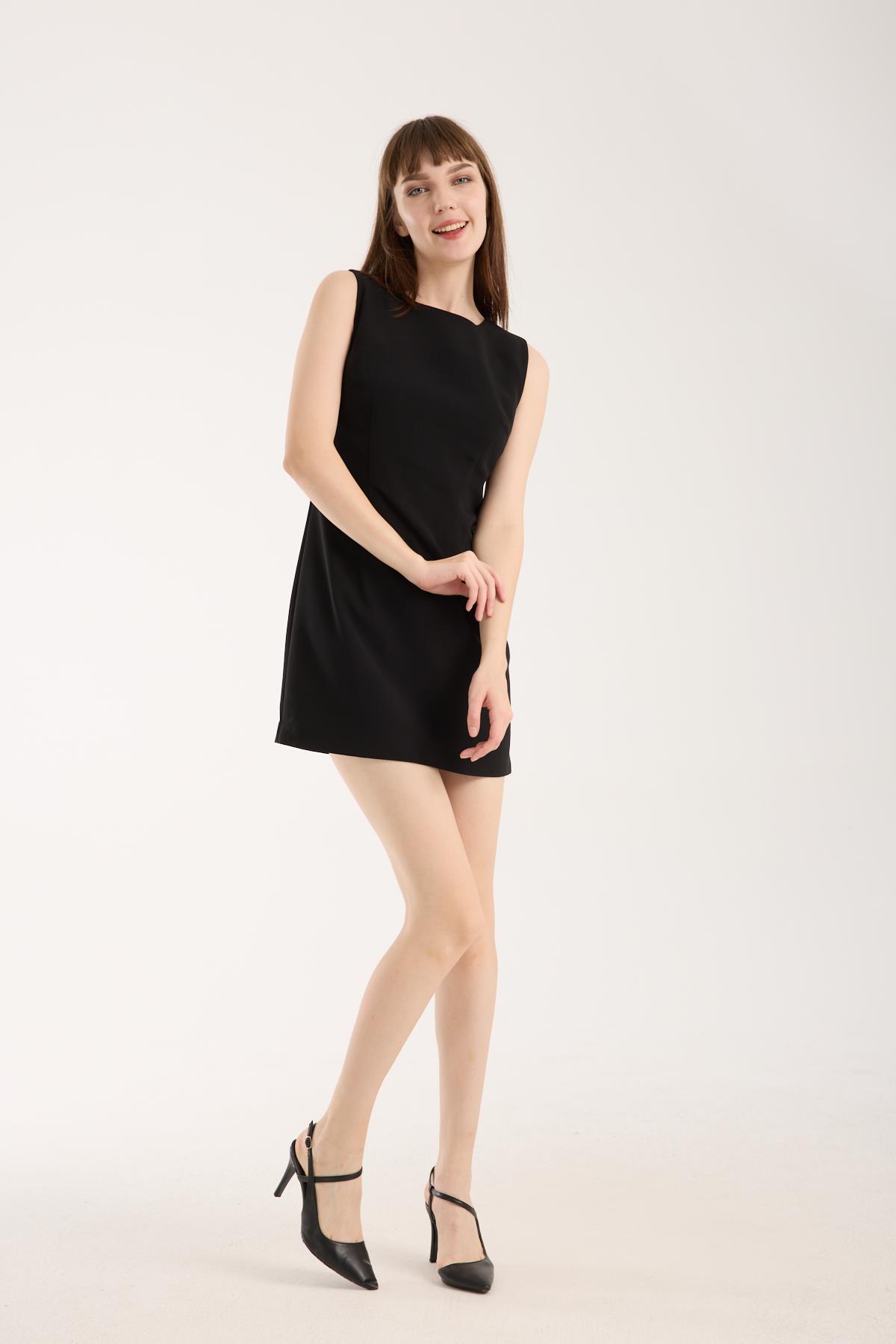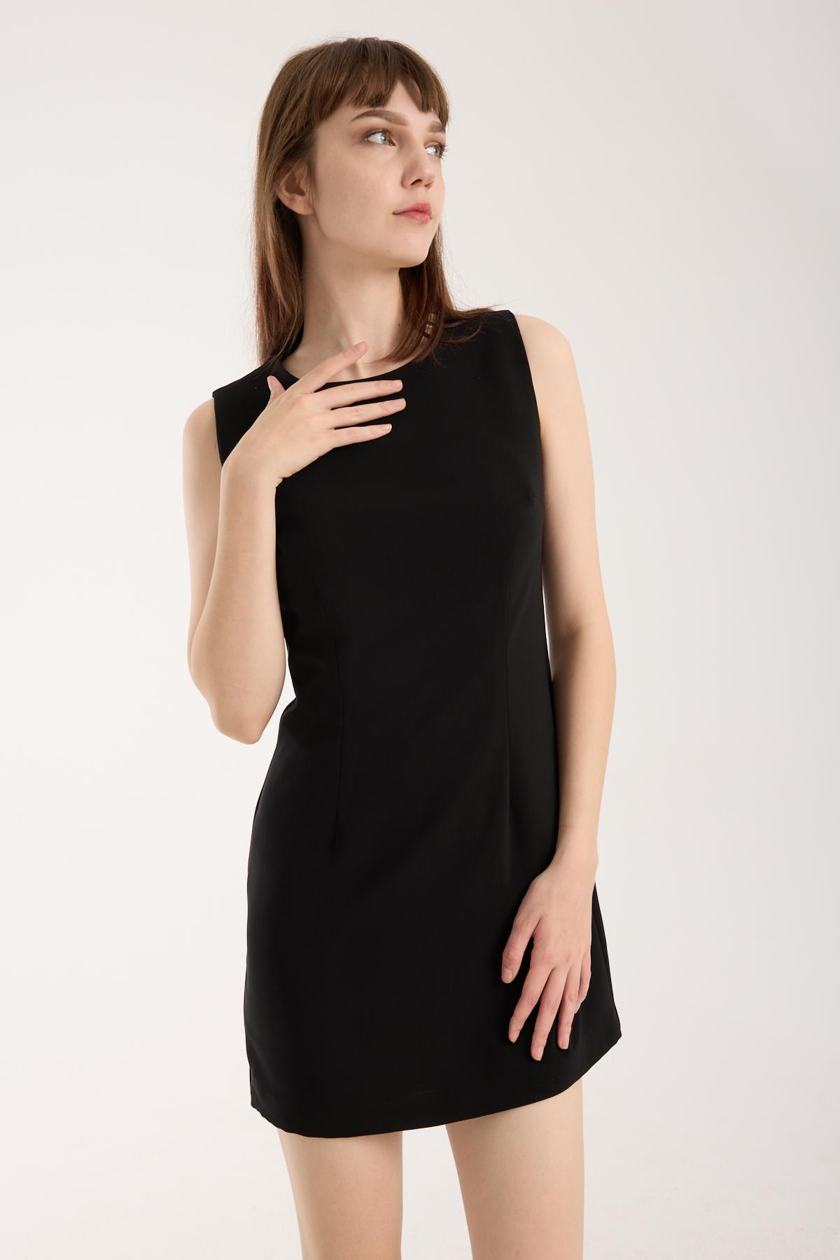 Siyah Krep Mini Elbise